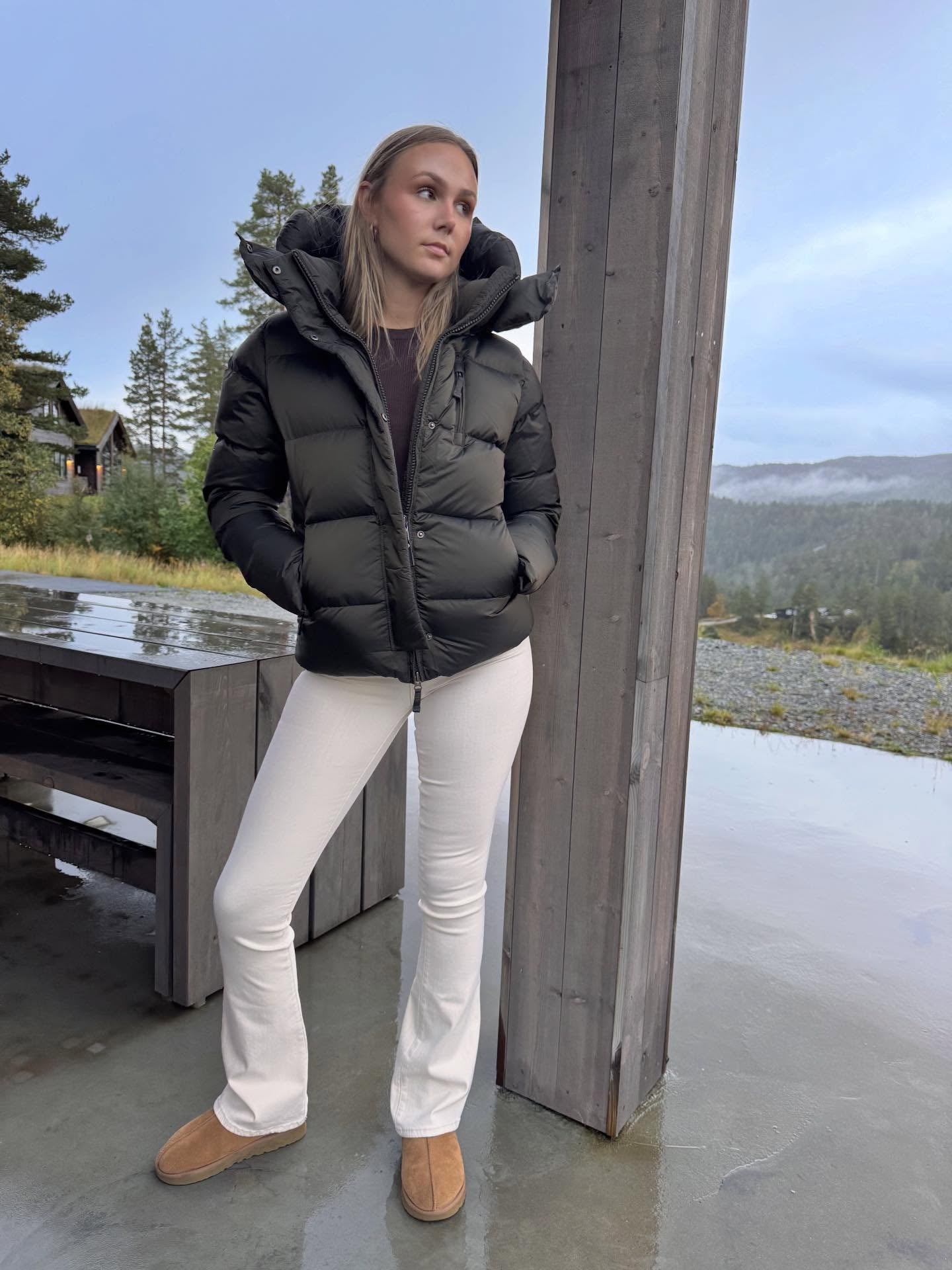 The wind-resistant outer shell is crafted from a smooth, matte fabric that protects against cold air and light moisture. A breathable inner lining, padded hood and high collar ensure comfort and protection throughout the day, while the short, refined fit creates a timeless and elegant silhouette.